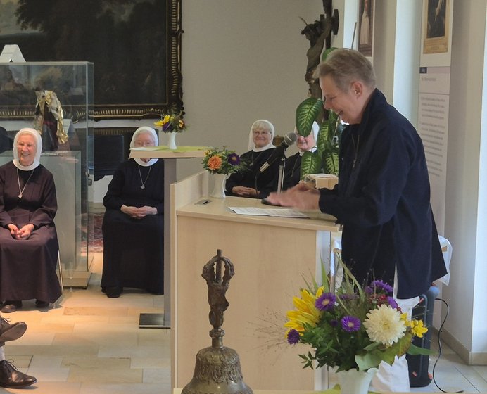 Am 15. September wurde ihr Abschied im Mutterhaus mit Kolleginnen und Kollegen, Kooperationspartnern und langjährigen Weggefährten gefeiert. In ihren Abschiedsreden würdigten Rednerinnen und Redner die warmherzige Persönlichkeit, den vorausschauenden Blick und das große Engagement, mit dem Gabriela Reger die Schule geprägt hat. Schwester Rosa Maria betonte, dass Gabriela Reger die Werte der Barmherzigen Schwestern immer verteidigt und an die Schüler weitergegeben hat. Auch das Feuer, das in ihr für die Pflege und die ihr anvertrauten Menschen brannte, konnte sie in anderen entfachen. Heike Gust, Generalökonomin der Barmherzigen Schwestern, hob das Engagement der beliebten Schulleiterin hervor: “Sie lebte stets das Motto der Schule „Pflegen mit Herz“. Sie hat mit ihrem Team die Schule weiterentwickelt und Kooperationen ausgebaut.” Dr. Simon Machnik, Direktor der Kliniken und Pflegefachschule, dankte Gabriela Reger: “Unter Ihrer Leitung hat sich unsere Schule einen hervorragenden Ruf erarbeitet.”